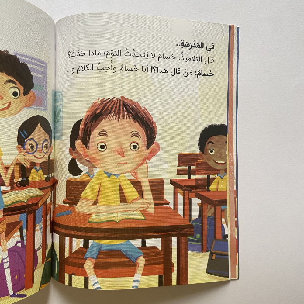 حسام يحب الكلام، في كل مكان، وقت الدرس، ومع بائع المقصف، وحتى في المنزل. فما الذي حدث، وجعل حسام يتوقف عن الكلام؟