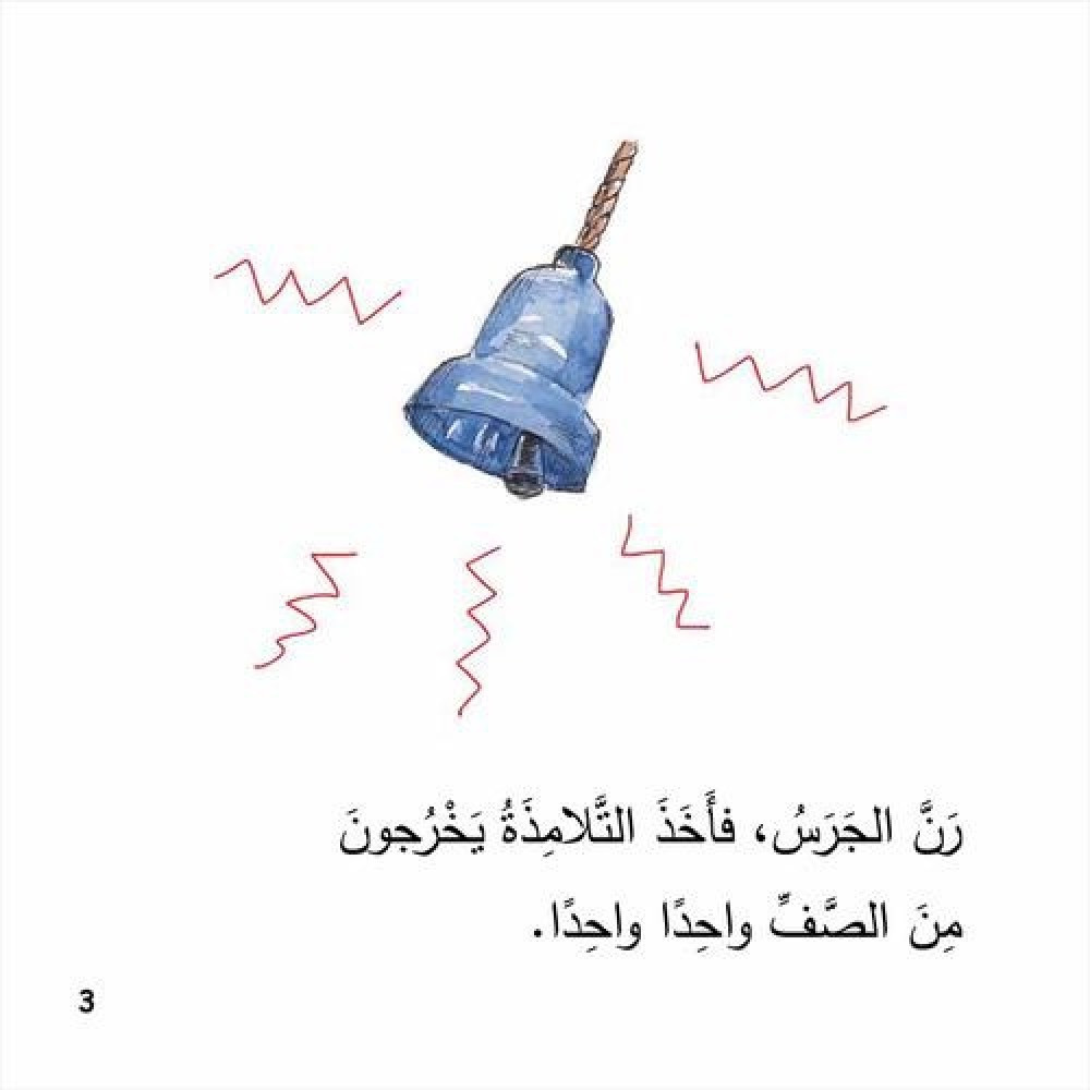 يستعجل مفيد للخروج من الصف، فيصطدم بكتف فريد، فيقع طعام فريد على الأرض ويخسره.