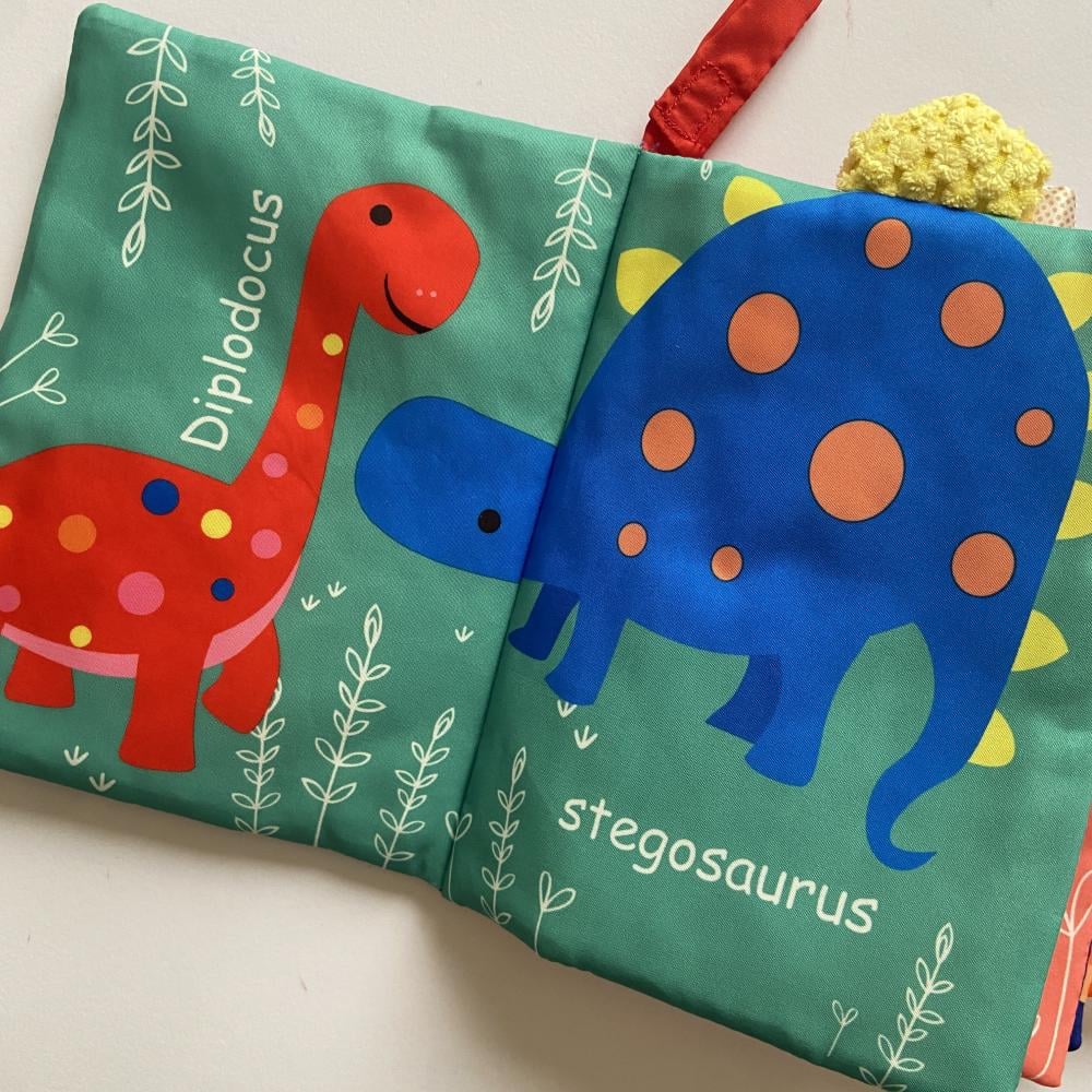 • إن الكتاب القماشي يحتوي على صور للديناصورات بألوان جذابة ورائعة لتساعد الرضع على التركيز.