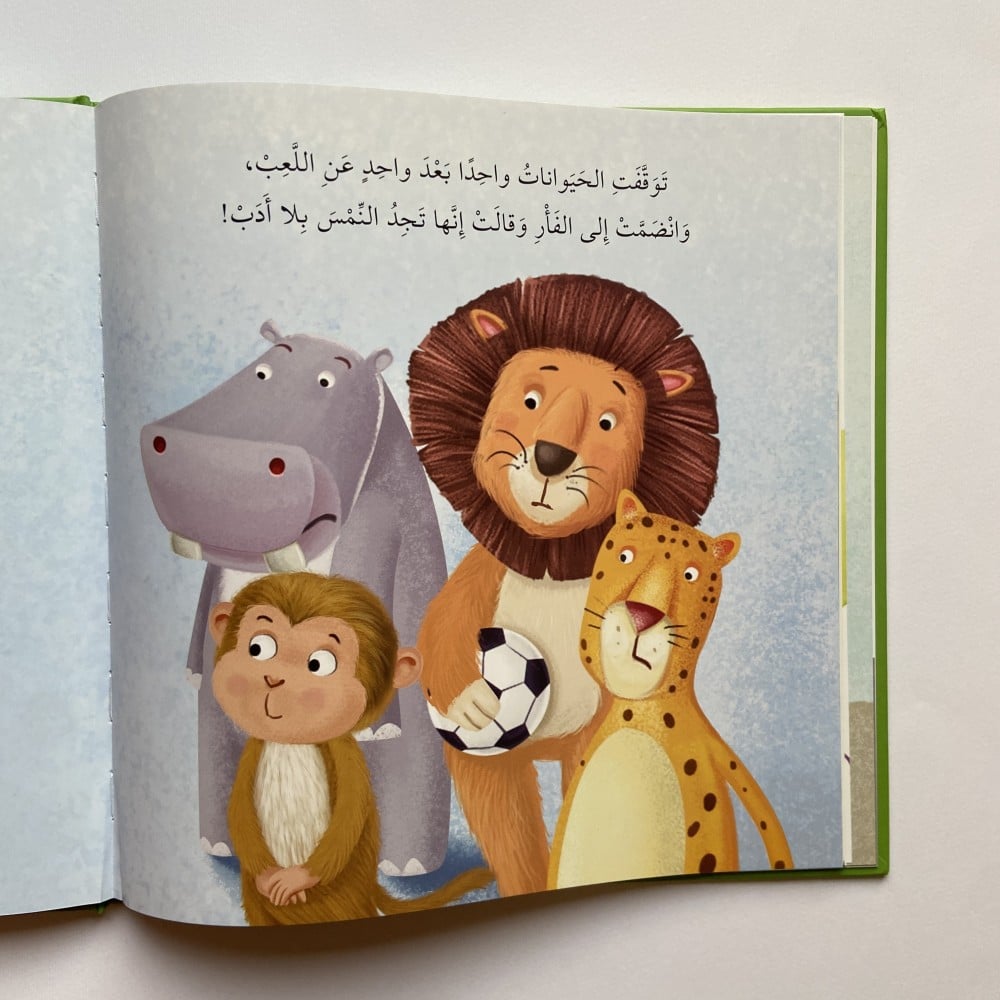 ما الذي يحدث حين يحسن النمس التصرف؟ هذا ما سنعرفه عندما نقرأ أحداث هذه القصة، يُعرف النمس بسوء خُلقِه وتَصَرفاتُه الغير مقبولَة مع الآخرين، ولهذا السبب لا أَحد يرغب في الذهاب إلى حفل عيد ميلاده، ولكن كيف سيتعلم النمس حسن التصرف مع الآخرين؟ هيا لنكتشف ذلك عبر الأحداث التي جاءت في قصص عن حسن التصرف التي يوفرها متجر كتب مساحة